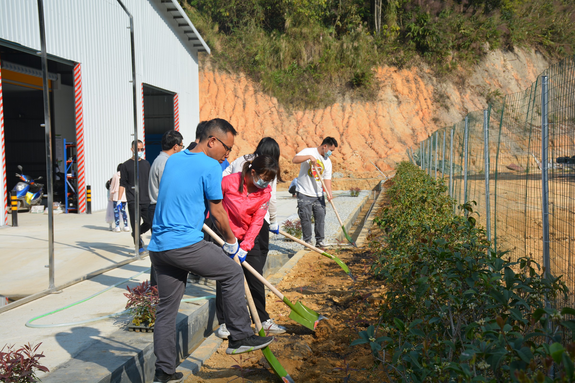 12日上午,艳阳高照,益康生设备公司的干部员工早早就来到了新兴县县域多源垃圾处理中心。该处理中心建成初期,周边的绿植稀稀疏疏、黄土裸露,为改善周边生态环境,给大自然增添新绿,干部员工们纷纷带着铁锹、锄头、水桶等工具,分工协作、锄地翻土、分发花苗……个个干劲十足、配合默契,有条不紊地种下了一排排新苗,用实际行动践行着低碳环保理念。