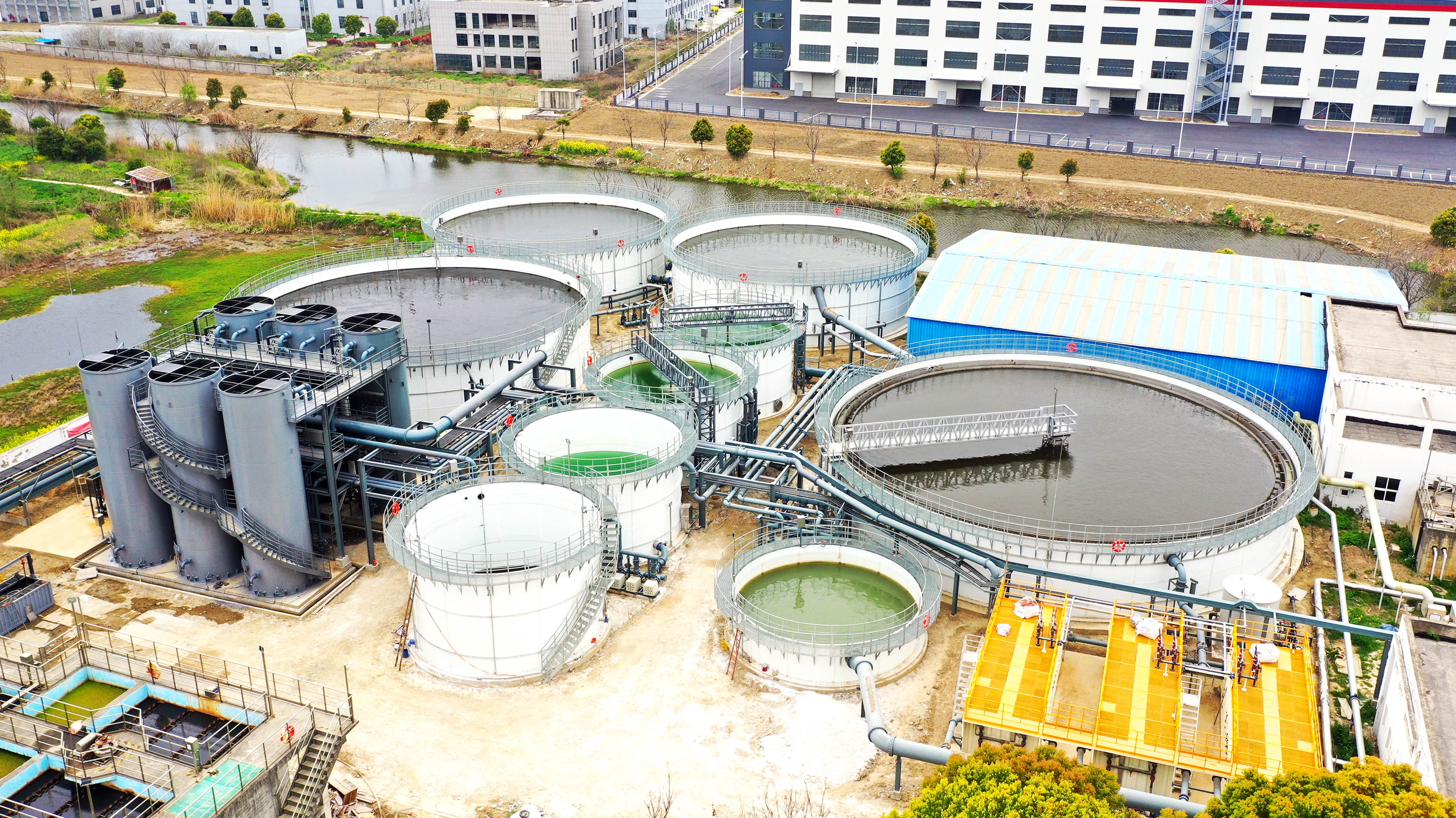 泰州中法工业污水处理二期项目位于江苏省泰州市。盈和瑞环境提供主体处理设备缺氧池、好氧池、二沉池、中转池、还原池等,共计7座,均采用环氧拼装罐体。环氧拼装罐由工厂预制、现场拼接完成。环氧钢板防腐性能优越,安装速度快,外形美观,提升项目形象。