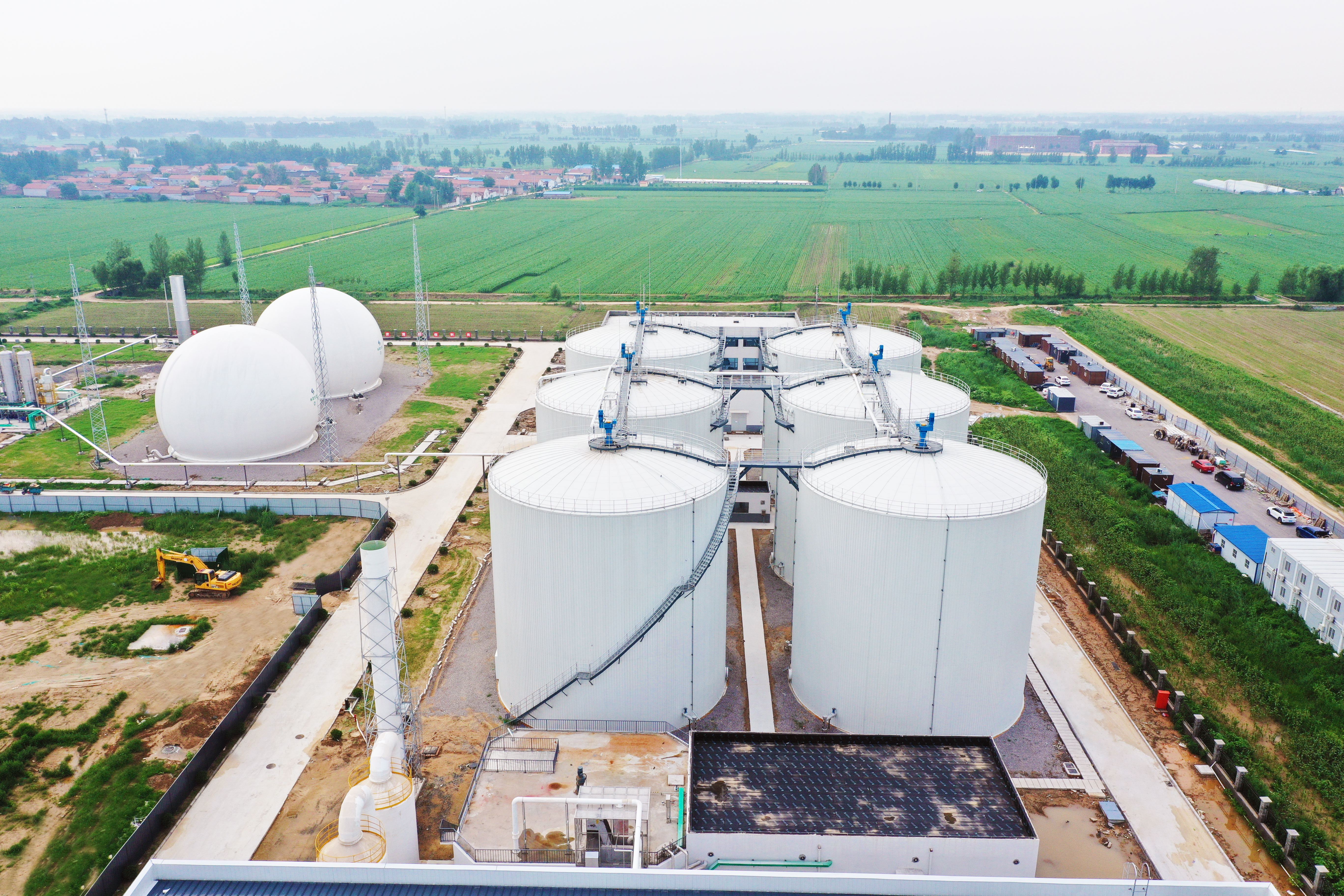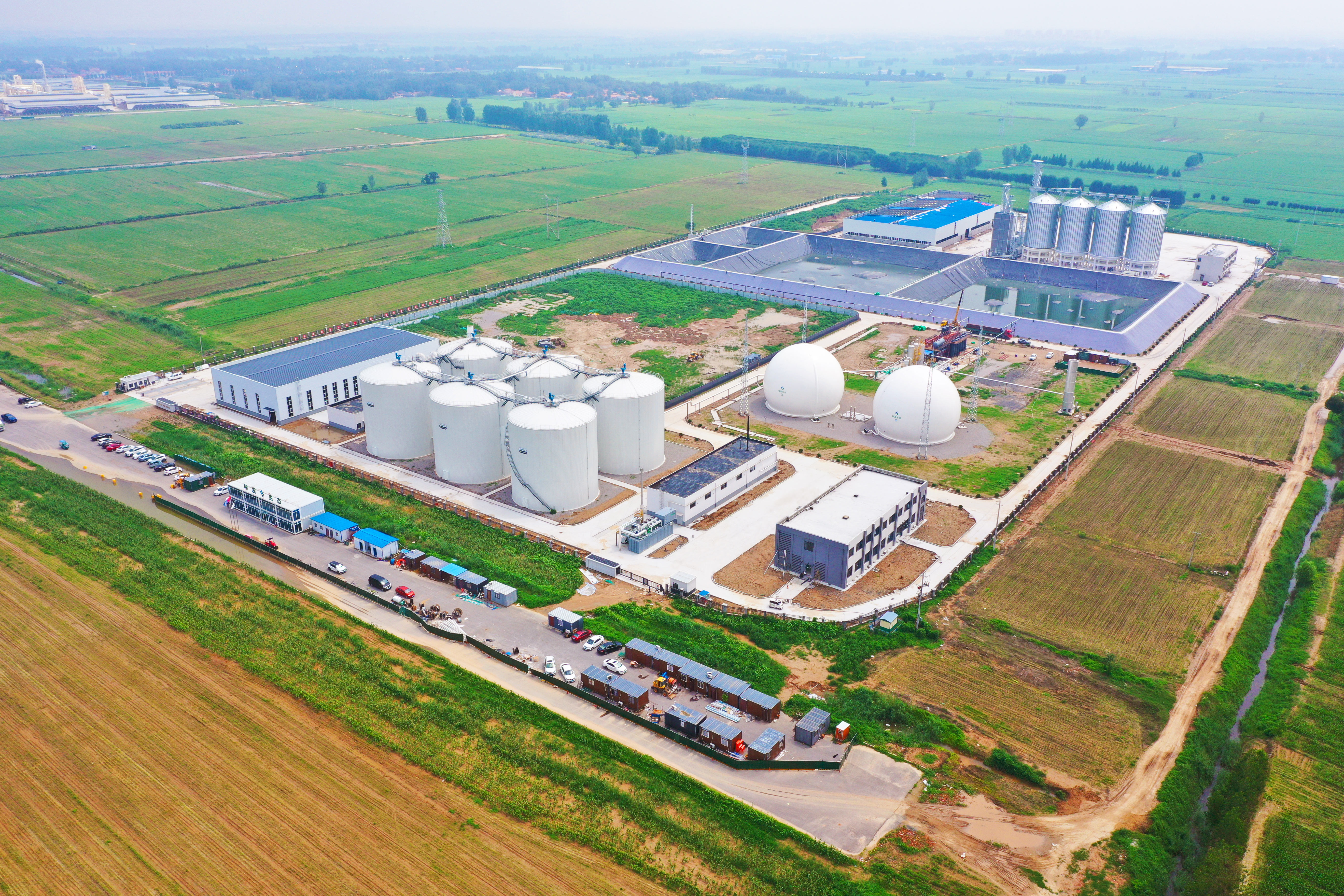 鄄城县有机废弃物资源化综合利用示范项目位于山东省菏泽市,占地面积约178亩。一期工程主要建设预处理系统、厌氧发酵系统、沼气净化系统、发电系统、沼气提纯系统、除臭系统、黑膜沼液储池系统及公共设施等。项目建成后,将具备强大的处理能力,每年可处理畜禽粪污35万吨,沼气发电800万千瓦时,生产绿色生物天然气840万立方米,沼渣、沼液30万吨用于土壤改良。