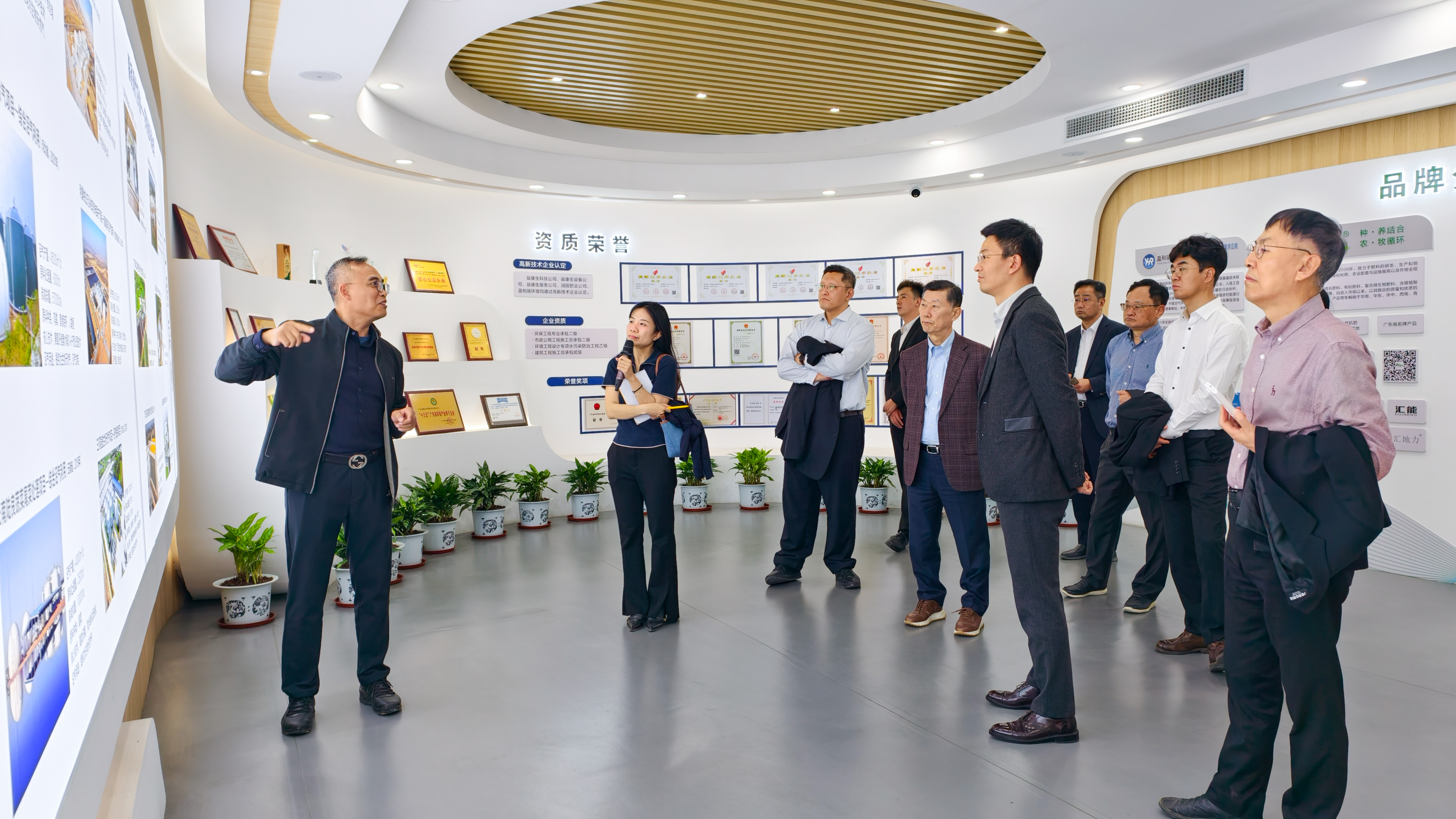 考察团一行先后参观了益康生态展览馆和“互联网+环保”指挥中心,详细了解公司在环保领域的技术积累与业务布局。通过环保管家智领平台,Harim集团代表实时观摩了远程监控下的养殖场污水处理与设备运行实况。