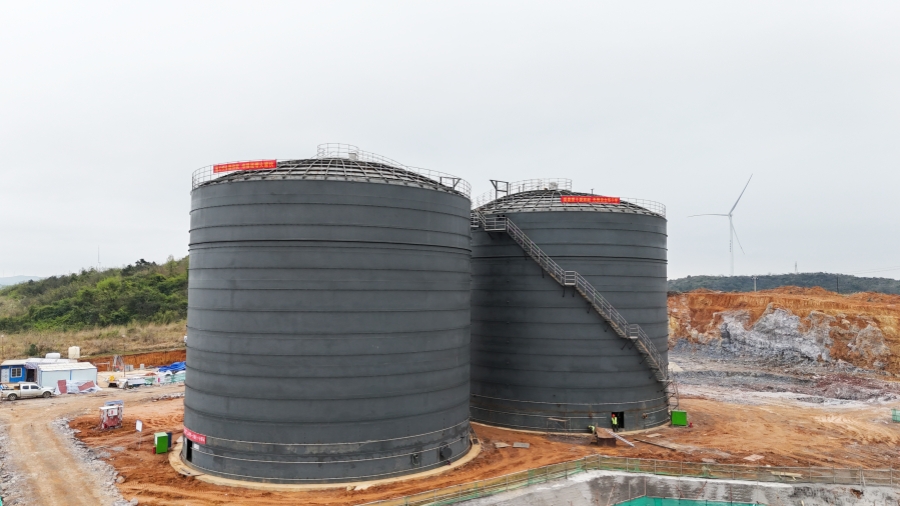 作为益康生态首个集投资、建设与运营为一体的生物天然气项目,富川项目依托温氏股份在当地养殖业产生的畜禽粪污资源,采用“集中回收——厌氧发酵——生物天然气+有机肥”的技术路径,构建区域畜禽粪污资源化利用体系。两座厌氧发酵罐作为项目的“心脏”,投运后将承担粪污原料的厌氧消化与沼气生成核心功能。