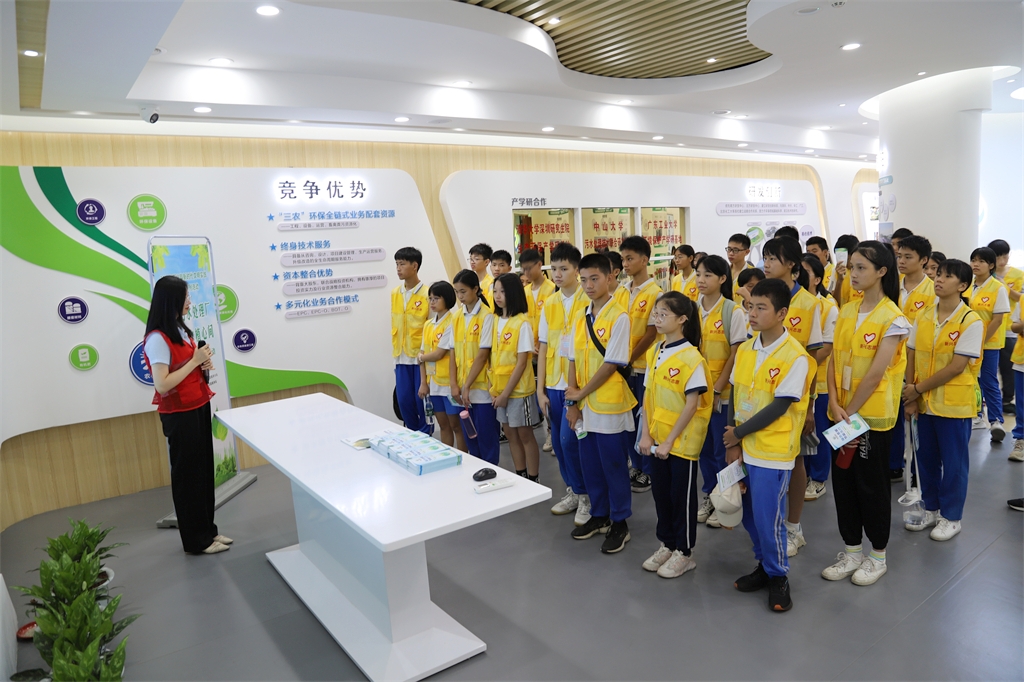 基地讲解员带领同学们先后参观了展览馆、“互联网+环保”指挥中心及东成镇级生活污水处理站,“这个是清水池,我们可以看到,污水经过多级处理后变得十分清澈,倒映着蓝天白云”……讲解员将深奥的环保专业知识化繁为简,让同学们直观地了解到污水处理的相关知识。沉浸式体验的形式,加深了青少年对生态环境环保工作的了解和认识,也有助于激发他们探寻环境保护科学奥秘的兴趣。