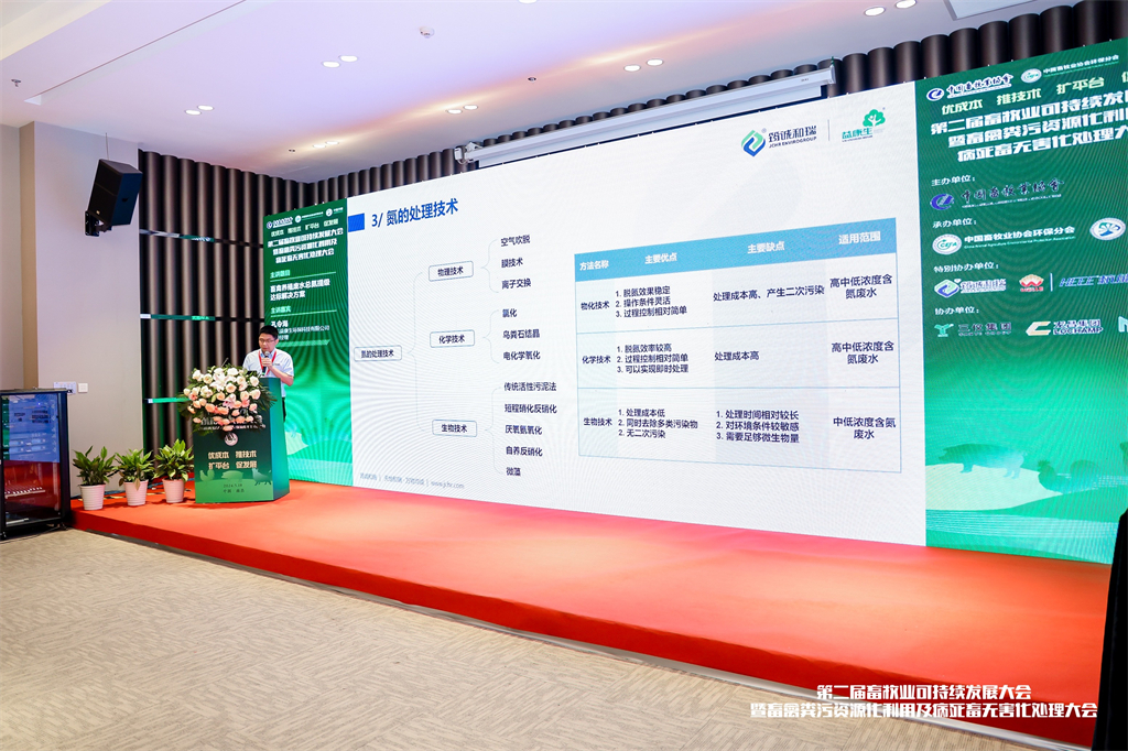 展会期间,筠诚和瑞作为受邀单位,出席第二届畜牧业可持续发展大会暨畜禽粪污资源化利用及病死畜无害化处理大会。会上,筠诚和瑞相关负责人与高校教授、同行交流,分享公司关于总氮污染物的治理经验和解决思路。