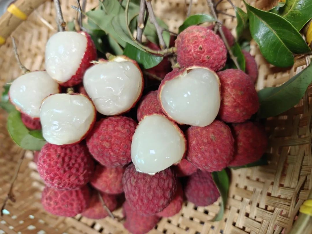 外形辨识度高:果大核小,果壳鲜艳,披着一身“胭脂红”,表面龟裂片微微隆起,绝对是荔枝界的“颜值担当”。